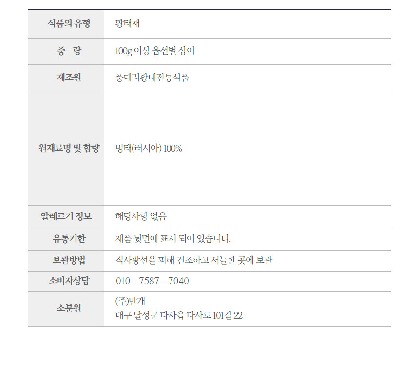 강원도 인제군 용대리 정품 순살 황태채